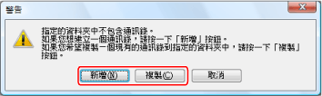 若在步驟3所選的資料夾中已有一個通訊錄,則顯示如下訊息。如您需要使用已有的通訊錄,按一下[直接使用],若您需要使用傳真驅動程式中的通訊錄,按一下[覆蓋]。