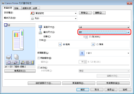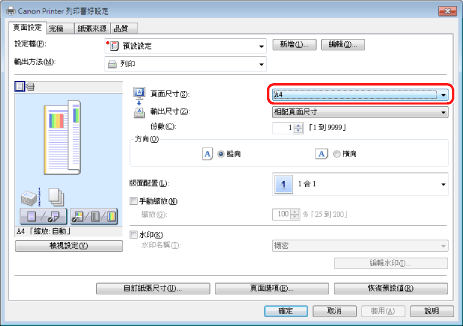 從[頁面尺寸]選擇在應用程式中創建的文件的頁面尺寸。