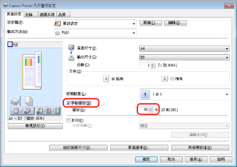 根據所使用的印表機型號,可能無法將文件放大到適合所選頁面尺寸的最佳倍率。