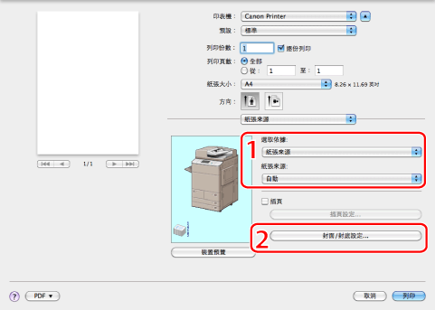 若使用Mac OS X10.5或更新版本,按一下[印表機]右側的[