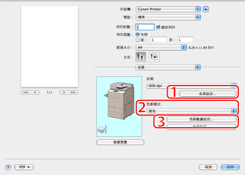 若使用Mac OS X10.5或更新版本,按一下[印表機]右側的[