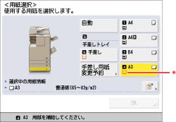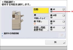 それぞれの給紙箇所を用紙カセット自動選択の対象にするかどうかを、機能ごとに設定できます。工場出荷時は、手差しトレイが「OFF」に、他はすべて「ON」に設定されています。(→機能ごとに給紙箇所を自動で選択する)