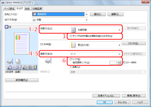 画面の表示方法については、「印刷する」または「あらかじめ印刷の設定をする」を参照してください。