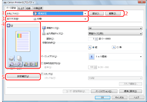 画面の表示方法については、「印刷する」または「あらかじめ印刷の設定をする」を参照してください。