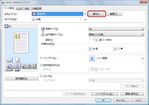 お使いのOS、プリンタードライバーの種類およびバージョンによって画面が異なることがあります。