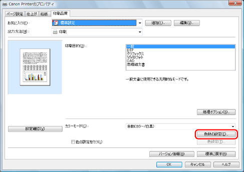 [色数の設定]が表示されない場合は、[デバイスの設定]タブで機能バージョンを設定してください。(→「