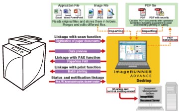 imageRUNNER ADVANCE Desktopis an application which simplifies the use of imageRUNNER ADVANCE functions while improving productivity and reducing office costs concerning paper and electronic documents.
