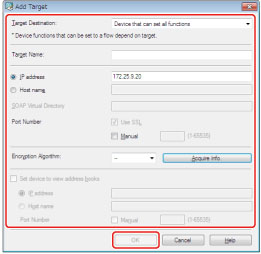 Click [Acquire Info.] → select an encryption method for [Encryption Algorithm].