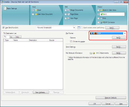 You can specify user information, such as the Department ID, user name, or e-mail address, as an environment variable. For example, if you are sending a file to a file server, you can specify the user name for the destination folder name. When creating the flow, by defining an environment variable for [Folder Path], the user name will be adopted for the destination folder name.