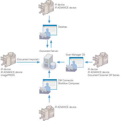 Documents imported with imageWARE Scan Manager DS can be released to "Document Server," which is the core imageWARE series software product utilised in various business situations.