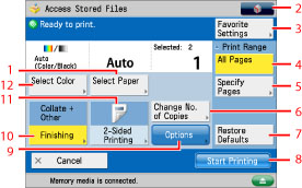 Press to set the number of prints when multiple files are selected. This key is displayed only when multiple files are selected.