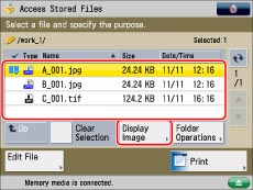 Select the desired memory media → select the directory where the file you want to display is stored.