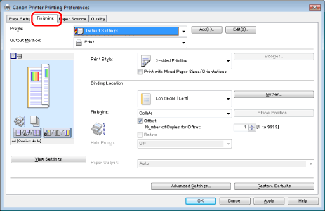 For instructions on how to display the printer driver screen, see "Printing" or "Configuring the Default Print Settings."