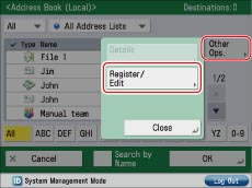 You can perform this procedure using the touch panel display or the Remote UI. Using the Remote UI, you can register a destination with ease.