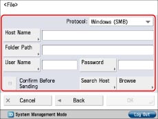 Enter the computer name that you checked in step 1 in "Creating a Shared Folder (Windows)", or step 2 in "Creating a Shared Folder (Mac)." You can also press [Search Host] to search for the destination computer.