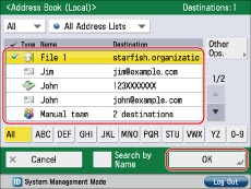 Click [Address Book] → [Address List 01] on the Address List screen.