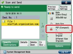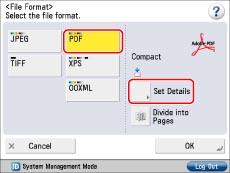 You can convert original colour/grayscale images scanned at a resolution of 300 dpi to compact (approx. 1/10 original size) PDF or XPS files. This mode eliminates the issue of the large file size of digitized documents, reducing colour documents to the size of black-and-white documents. This also enables you to reduce the load on the network and servers. For details, see