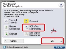 Press [OCR (Text Searchable)] → [OK] → [OK].
