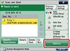 To scan different sized originals, press [Different Size Originals]. This mode enables you to scan different size originals with the same widths (A3 and A4, etc.), together as one group by setting them in the feeder. You can reduce the time it takes to send because you do not need to send according to the original size.