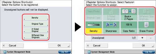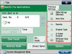 You can register settings in the shortcut keys displayed on the Fax screen. You can register up to four desired buttons from [Options].
