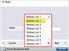 Press the drop-down list → select an address list from Address List 1 to 10.