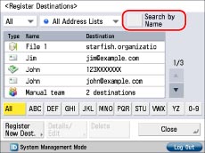 If you press [Search by Name], a screen for narrowing the search in the Address Book appears.