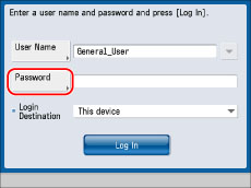 If Local Device Authentication is set as the user authentication system, only [This device] is displayed in the <Login Destination> drop-down list.