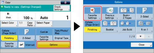 If [2-Sided] and [2 on 1] are registered in a shortcut button, they are displayed as shown below.