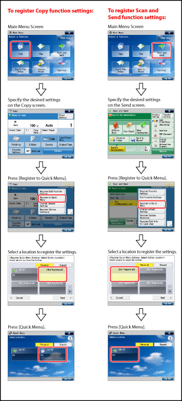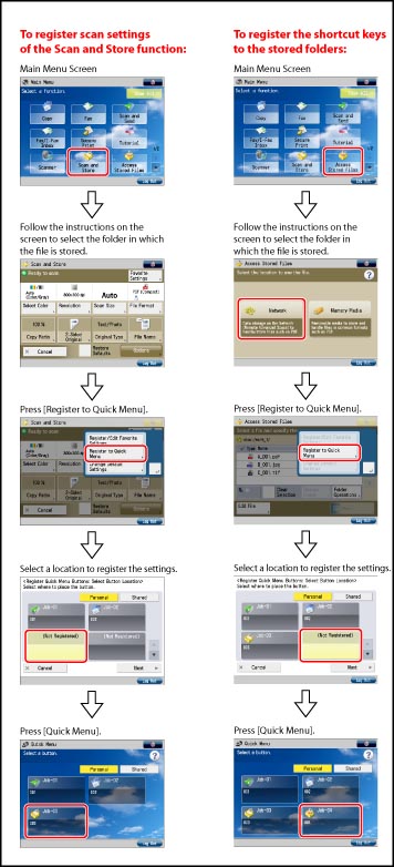 For instructions on registering a Personal button/Shared button, see the explanation using the Scan and Send function as an example in "Registering a Personal Button/Shared Button."