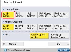 Press [All IP Addrs.] for <Local Address>.