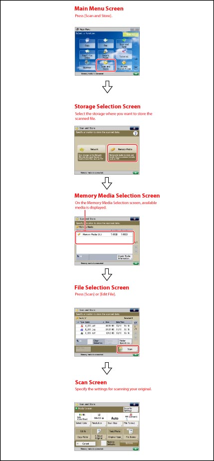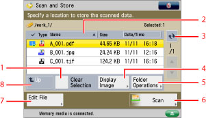 For instructions on arranging folders, checking detailed information for the file, and editing/deleting files, see "Access Stored Files."