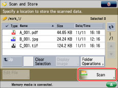 You can scan and store up to 999 pages at one time. If two-sided originals are scanned using the feeder, you can store up to 1,000 pages. Once the maximum number of originals you can scan is reached, a message asking whether to store appears.