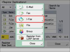 The first character that you enter for the name is used for sorting the destination list when you press keys, such as [ABC], [DEF], and [GHI], on the Address Book screen. If [Search by Name] is pressed on the Address Book screen, a screen for narrowing the search in the Address Book appears.
