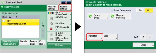 If you want to set password in the settings stored in the registered button, as you often import settings in a favorite button to another machine and you want to prevent users from pretending to be other users, exclude a password when registering.