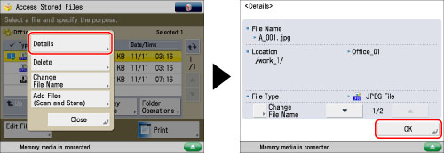 You can check the detailed information for files (folder name, location, date modified etc.), and add or delete files stored on the network.