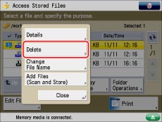 You can check the detailed information for files on the memory media (file name, location, date modified etc.), and add or delete files.