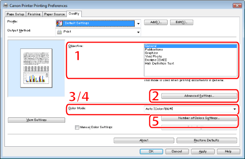 For instructions on how to display the printer driver screen, see "Printing" or "Configuring the Default Print Settings."