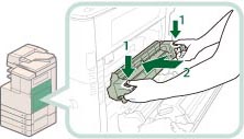 The fixing unit and its surroundings inside the printer are hot during use. Make sure the fixing unit is completely cool before removing the jammed paper. Touching the fixing unit when it is still hot may result in burns.