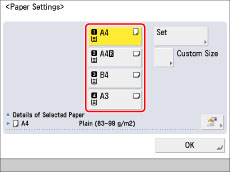 Paper sizes and types can also be registered from the Consumable screen.(See "Checking the Status of Consumables and Other Information.")