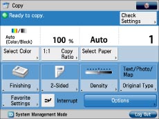 If [Department ID Management] or [Limit Functions] for [Department ID Management] is set to 'On', the startup screen may differ from the screen set to be displayed as default at startup.