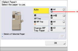 The paper supply indicator shows the remaining amount of paper in each paper drawer on the Paper Select screen, and on the screen that appears when paper in a paper drawer has run out during printing.