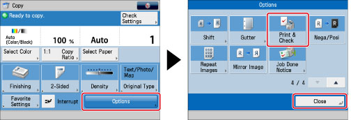 Place your original on the platen glass. You cannot copy using [Print & Check] with the originals set in the feeder.