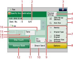 Press to send documents directly to the recipient. If you do not select Direct Sending, Memory Sending is used instead. (See "Switching to Direct Sending.")