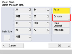You can manually specify a scan size when scanning originals that cannot be detected using [Auto]. You can also store the specified scan size.