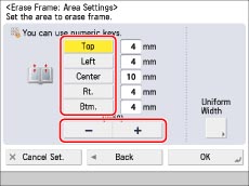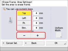 Specify the location of the binding marks → press [-] or [+] to set the erase frame width.