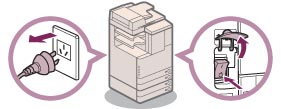 If there is smoke, or unusual noise, immediately turn the main power switch OFF, disconnect the power cord from the power outlet, and then call your local authorized Canon dealer. Using the machine in this state may cause a fire or electrical shock. Also, avoid placing objects around the power plug so that the machine can be disconnected whenever necessary.