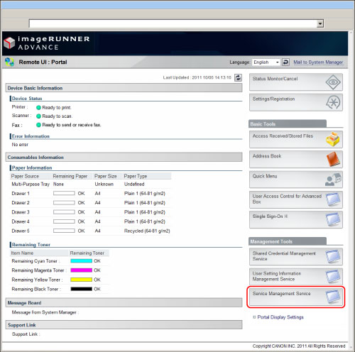 Click [Service Management Service] on the Remote UI portal page.