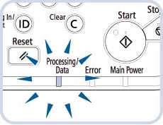 The Processing/Data indicator flashes or maintains a steady green light even when the machine enters the Sleep mode.