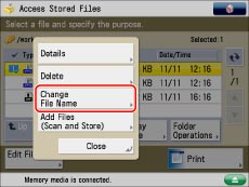 You can check the detailed information for files on the memory media (file name, location, date modified etc.), and add or delete files.