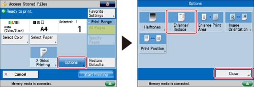Press [Options] → [Enlarge/Reduce] → [Close].